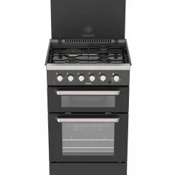 Featuring an anti rattle shelf, drop down lid, smoked glass with stainless steel cladding and t-bar handles, as well as fan assisted cooling and a 12V ignition the Spinflo Aspire LPG 3 Burner + 1 electric hob Cooker for Caravan and Motorhome is a top of the line cooker unit with an innovative, stylish design.