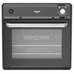 The Thetford Duplex caravan oven and grill combination runs off LPG gas, ignition is by multi point Piezo, so no electrical connection is required at all. The Spinflo Duplex oven features two burners one for the oven and one for the grill, with a smart black smoke exterior. Ref numbers for oven is SOG70998-SP for 12 volt ignition