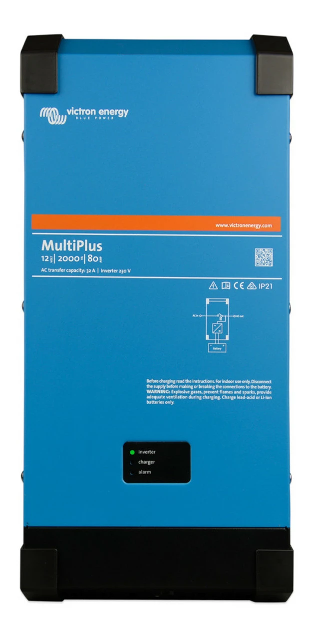 In addition to providing 230V power, the Victron Multiplus 12/2000/80 also handles the charging task for the dual 110Ah AGM batteries included in the kit, keeping them topped up ready to use.Â